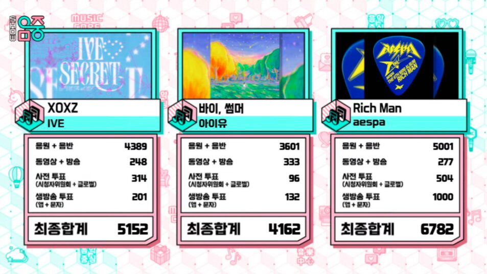 その他1位候補にノミネートされたのはIU「Bye, Summer」とIVE「XOXZ」でした。