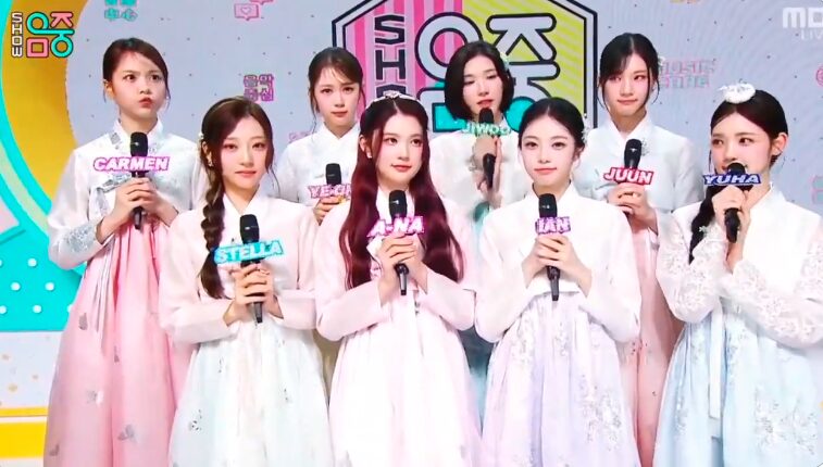 8人はチマチョゴリを着用し、正式な番組MCであるエイナ以外のメンバーも全員揃って番組を進行しました。