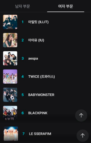最新の中間発表では、男性アーティスト部門の1位〜6位をHYBE所属アーティストが独占しています。