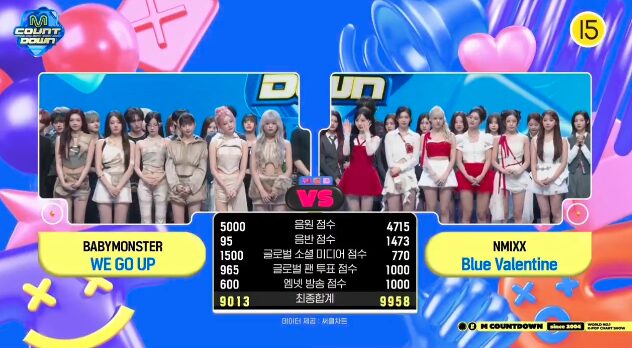 1位候補にはBABYMONSTERの「WE GO UP」とNMIXXの「Blue Valentine」がノミネートされ、接戦の末、NMIXXが1位を獲得しました。