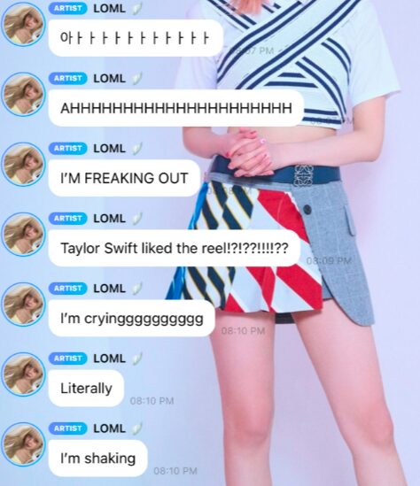 「いいね」を受け取ったリリーは大興奮。「もうパニック状態!テイラー・スウィフトが私のリールにいいねしてくれたの!?正直言って、めちゃくちゃ泣いたよ。恥ずかしいくらい泣きすぎてファンデーションも全部落ちちゃった。テイラー・スウィフトが私の存在を知ってくれたんだ!」と喜びを爆発させました。