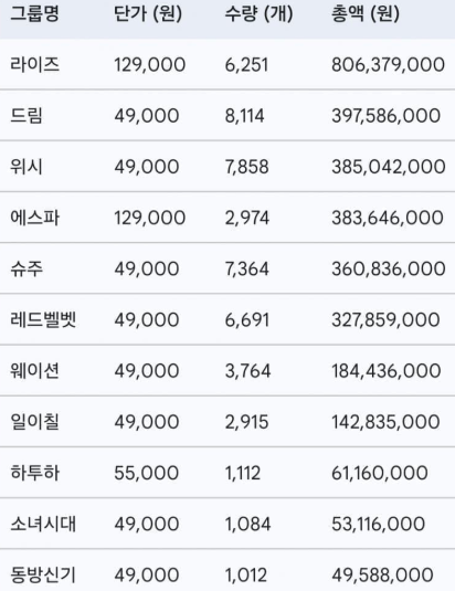 1.RIIZE: 129,000 x 6,251 = 806,379,000 KRW