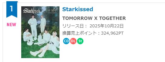 11月3日付オリコンの週間アルバムランキングが発表され、TXTの「Starkissed」が318,384枚を記録し、1位を獲得しました。