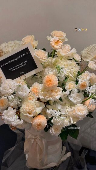 ウォニョンが、IVEのコンサートを前にBIGBANGのG-DRAGONから届いた花束を公開し、話題を集めています。