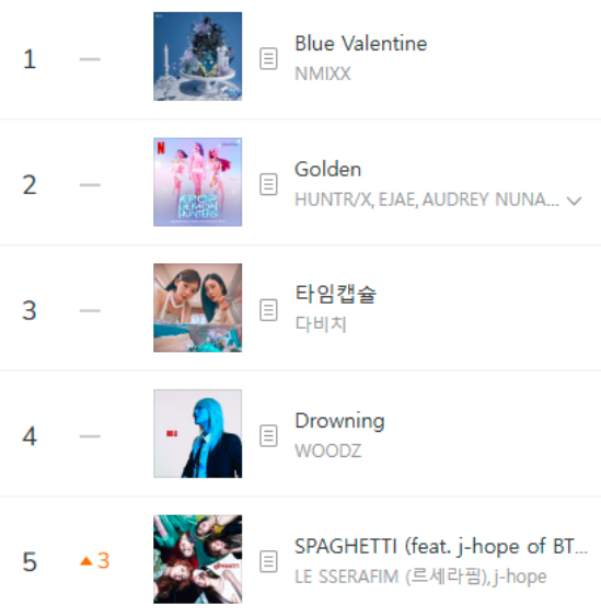 LE SSERAFIMの新曲「SPAGHETTI(feat. J-HOPE)」が、11月1日23時のMelonチャート「TOP100」で5位にランクインしました。