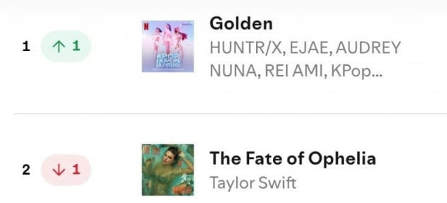 11月2日に発表されたグローバルSpotifyチャートで、HUNTR/Xの「GOLDEN」がテイラー・スウィフトの「The Fate of Ophelia」を再び上回りました。