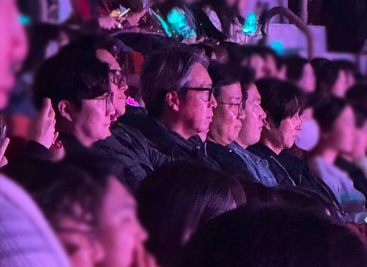 この日、Pledisのハン・ソンスCEO、HYBEのイ・ジェサンCEO、そしてBelift Labのキム・テホCEOがそろって来場し、仲良くステージを鑑賞する姿が目撃されました。
