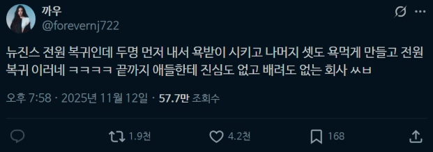 「NewJeansが全員で復帰するって言ってるのに、まず2人だけ復帰させて批判を浴びせて、残りの3人も批判させて完全復活って言ってるwwwwwwwwwwwwww この会社は最後までメンバーへの誠意も配慮もゼロ。クソッ。」