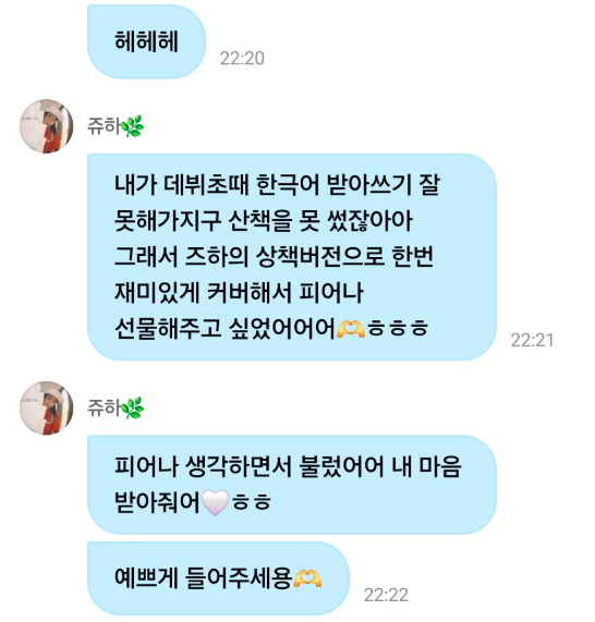 FEARNOTのことを思いながら歌ったので、どうか私の気持ちを受け取ってくださいㅎㅎ