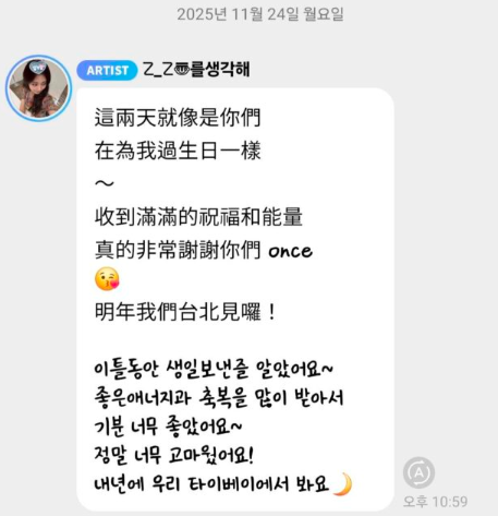 ・TWICEツウィ、26歳の誕生日にファンへ感謝メッセージ