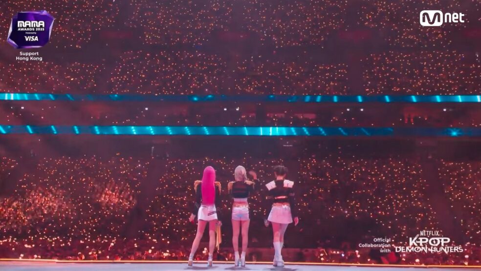 BABYMONSTERのファリタ、アヒョン、ローラは、Netflixアニメ『K-POP デーモンハンターズ』のスペシャルステージに出演し、HUNTR/xのキャラクターとして「GOLDEN」を披露しました。