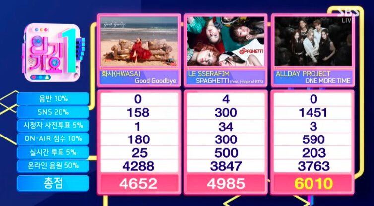 その他1位候補にノミネートされたのはLE SSERAFIM「SPAGHETTI」、ファサ「Good Goodbye」でした。ALLDAY PROJECTの出演はありませんでした。