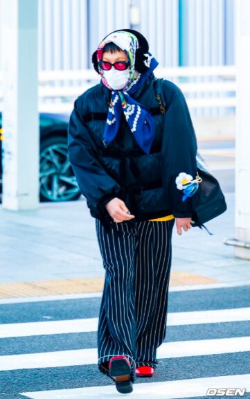 彼はトレードマークの“ほっかむり”にダウンを合わせた個性的なスタイルを披露し、ネットユーザーを驚かせました。