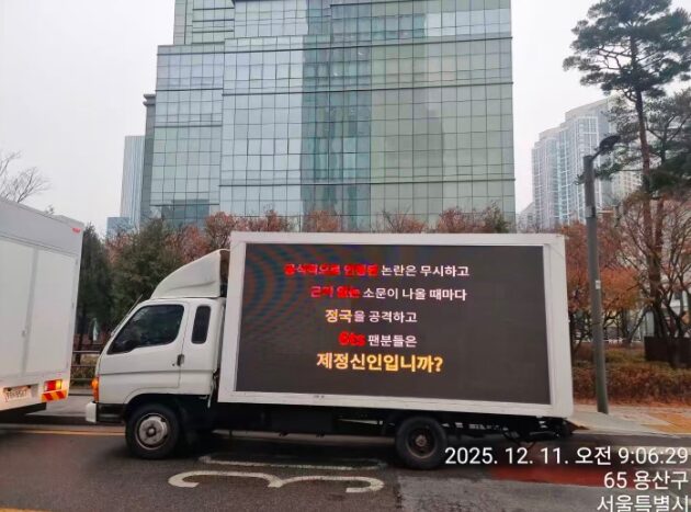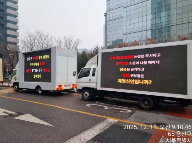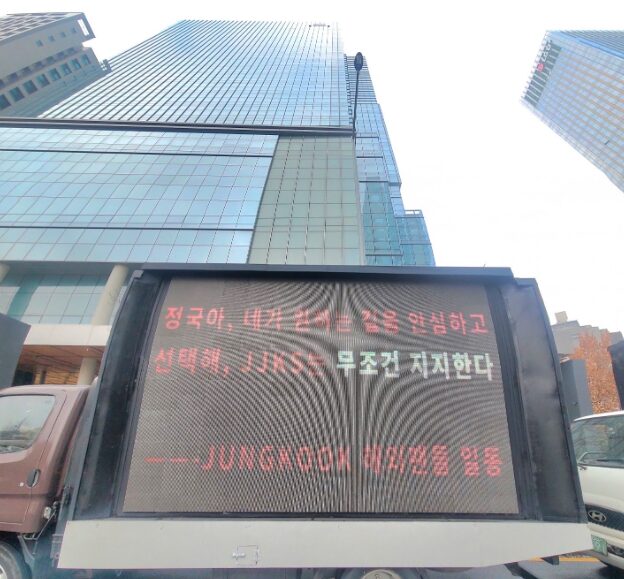 アクゲ(一人を支持するファン)がBTSを倒すためにトラックを送っている