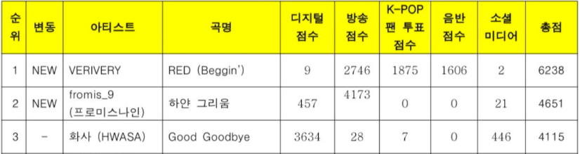 VERIVERY「RED」は1冠目、VERIVERYは3回目の1位獲得となりました。