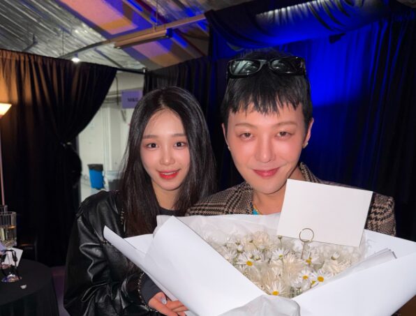 イ・ジュヨンはG-DRAGONのコンサートを訪れ、終演後にはバックステージの控え室とみられる場所で、彼と記念撮影をする姿を公開しています。写真の中でG-DRAGONが手にしている花束は、イ・ジュヨンが用意したものだと伝えられています。