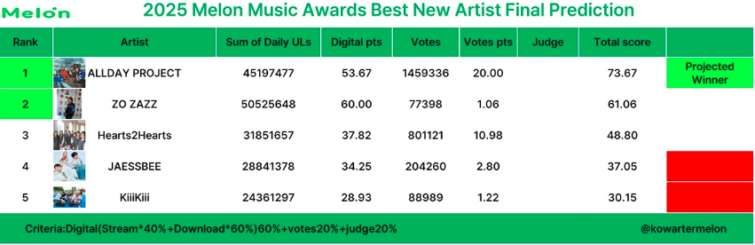 ALLDAY PROJECT、ZO ZAZZ、Hearts2Heartsが予想されています。