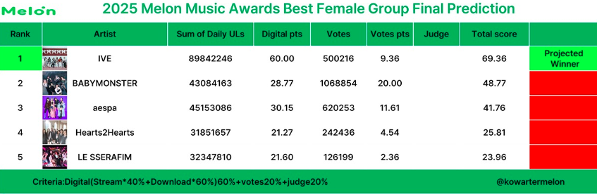 G-DRAGON、IVE、PLAVEが上位予想です。