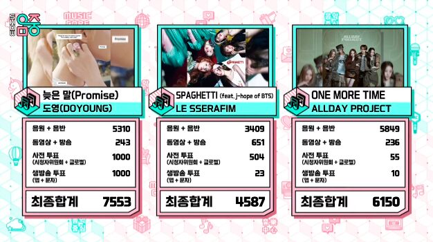 その他1位候補にノミネートされたのはLE SSERAFIM「SPAGHETTI」とALLDAY PROJECTの「One More Time」でした。