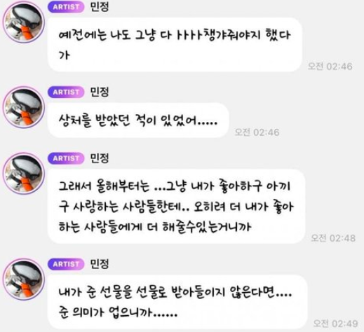 「以前は、みんなに与え、みんなの面倒を見なければならないと思っていました……でも、そのせいで傷ついた経験があります……だから今年は、愛する人、大切な人にもっと多くを与えようと決めました。私が贈ったプレゼントを、プレゼントとして受け取ってもらえないのなら……贈る意味がないんです……だからこれからは、愛する人だけに集中します」