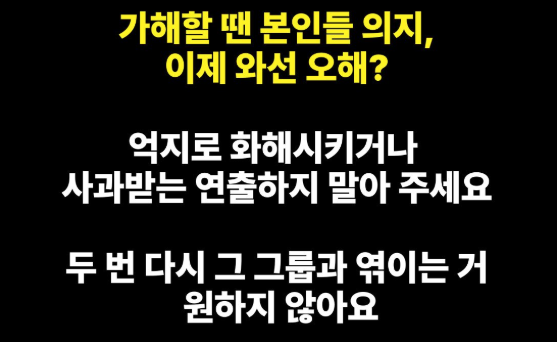 「加害していた時は彼らの意志でやったのに、今は誤解だと言うのですか?和解を強要したり、謝罪を求めたりしないでください。二度とあの集団とは関わり合いになりたくありません。」