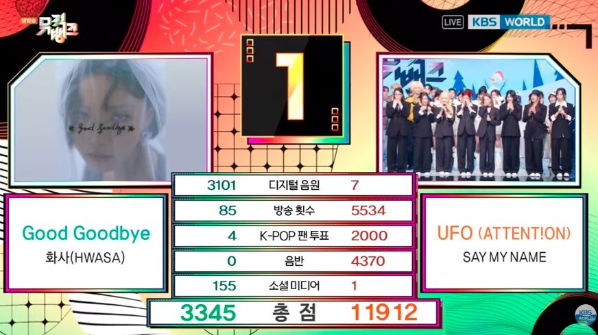 1月9日放送の音楽番組「ミュージックバンク」で、SAY MY NAME の「UFO(ATTENT!ON)」が1位を獲得しました。