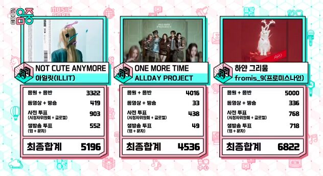 その他1位候補にノミネートされたのはILLITの「NOT CUTE ANYMORE」とALLDAY PROJECT「ONE MORE TIME」でした。