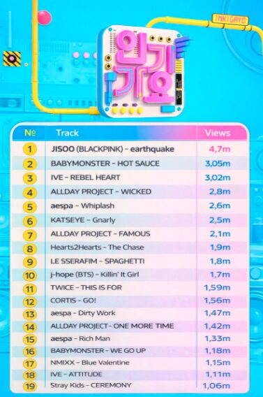 1位にはジスの「earthquake」が輝きました。BABYMONSTER「HOT SAUCE」、IVE「RABEL HEART」が続きます。