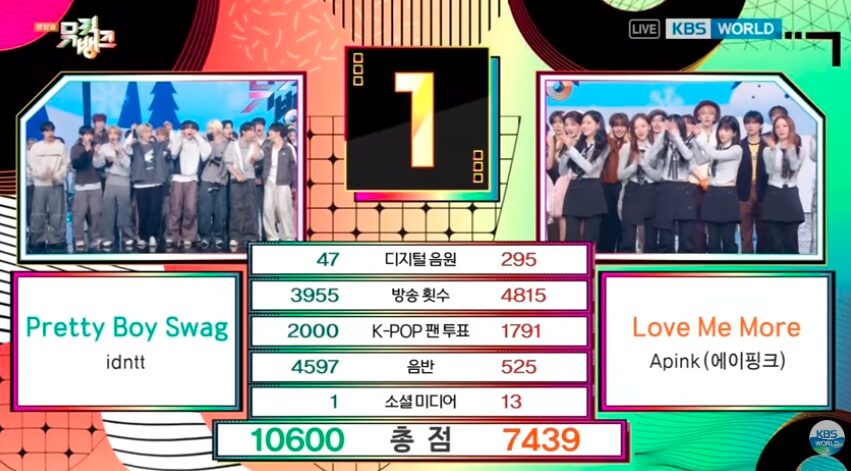ニュース1月16日のミュージックバンクはidnttの「Pretty Boy Swag」が1位を獲得しました!