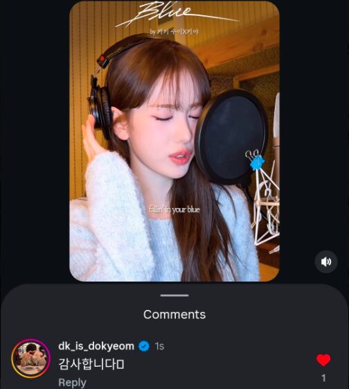 このカバーに対し、ドギョムは「いいね!」を押し、2人への感謝の気持ちを込めたメッセージを残しました。