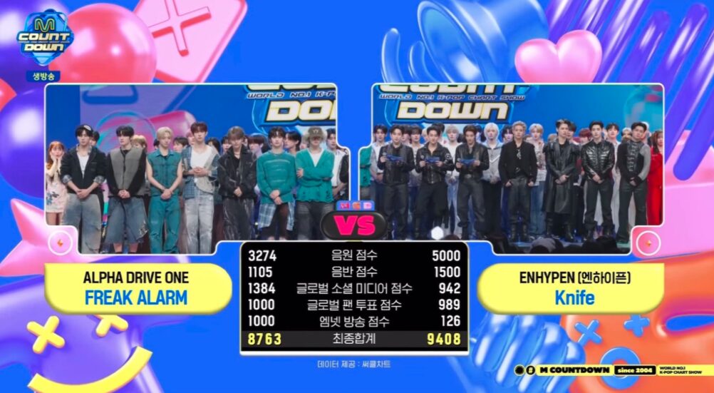 1月22日のMカウントダウンはENHYPENの「Knife」が1位を獲得しました。