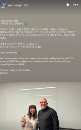 ADORの元CEOであるミン・ヒジン氏が最近面会した米国の弁護士が、名誉毀損キャンペーンをめぐる訴訟の対象が、HYBEアメリカだけでなくHYBEの韓国本社にまで拡大する可能性があると説明したと報じられました。ミン氏は1月19日、ソーシャルメディアを通じてこの弁護士と面会した事実を公表しています。