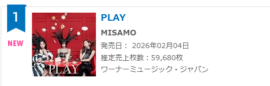 MISAMOが2月4日にリリースした1stアルバム「PLAY」の初動売上成績を以下に記載します。