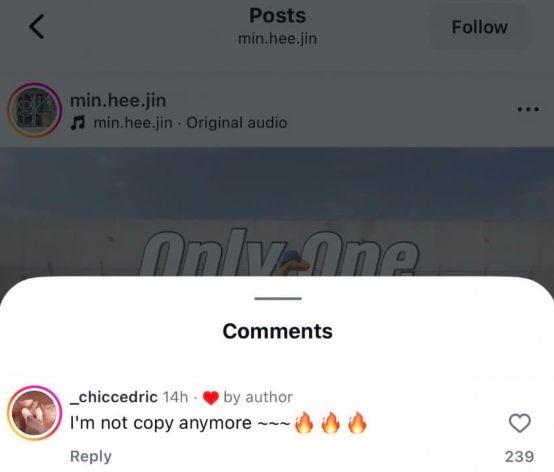 この投稿のコメント欄には、ILLITを揶揄する形で「I’m not copy anymore ~~~🔥🔥🔥」というコメントが書き込まれました。