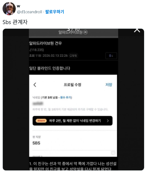 SBSスタッフを名乗る投稿