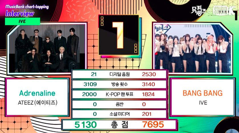 2月27日のミュージックバンクはIVEの「BANG BANG」が1位を獲得しました。