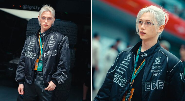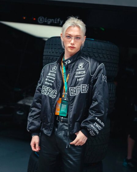 メルセデスAMGペトロナスチームの招待客としてイベントに登場したStray Kidsのフィリックスは、F1ウェアとサングラスを身にまとい、スタイリッシュな姿で注目を集めました。