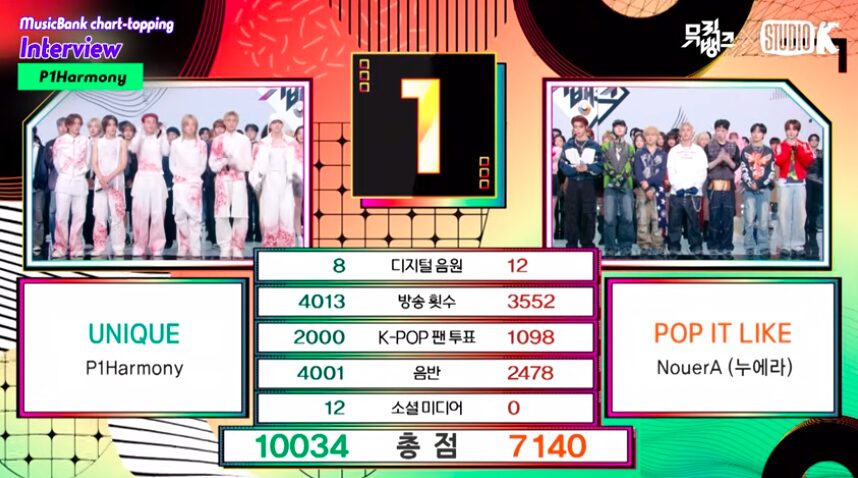 3月20日のミュージックバンクは、P1Harmonyの「UNIQUE」が1位を獲得しました。