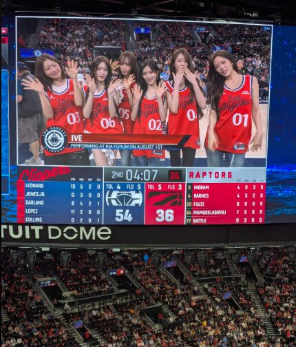 After announcing their upcoming world tour, @IVEstarship pulled up to the game, linked with @ClippersSpirit, and turned @IntuitDome into a full BANG BANG moment. pic.twitter.com/KFBCGpgKvr