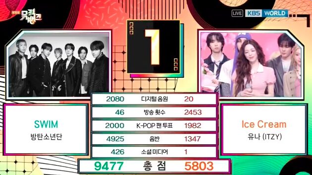 4月3日のミュージックバンクは、BTSの「SWIM」が1位を獲得しました!