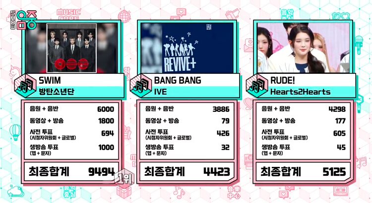 4月4日の「ショー!音楽中心」は、BTSの「SWIM」が1位を獲得しました!