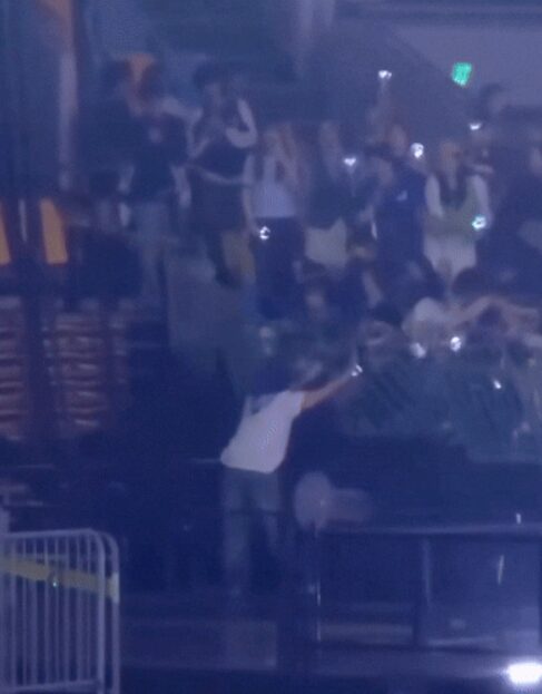 リョウクがファンの手にタッチしようとした際、バリケードが壊れし、ファンが床に落下しました。