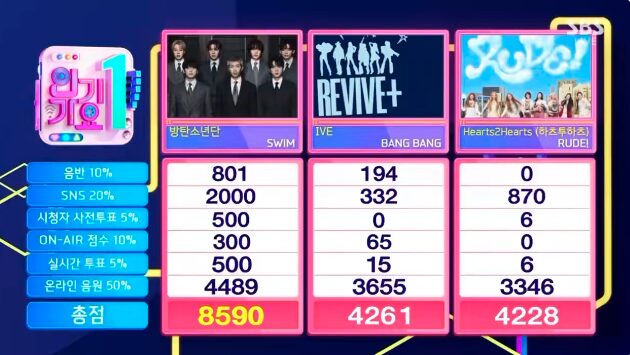 その他1位候補にノミネートされたのは、IVEの「BANG BANG」とHearts2Heartsの「RUDE!」でした。