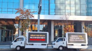 ネットユーザーLE SSERAFIMファン、NewJeans復帰発表に抗議 HYBE本社前でトラックデモ