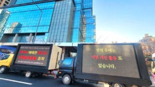 ネットユーザーBTSジョングク交際説で揺れる中、海外ファンがHYBE前でトラックデモ 12月9日、BTSのジョングクとaespaウィンターに交際説が浮上する中、ジョングクの海外ファンはHYBE本社前でトラックデモを行いました。 2025.12.10ネットユーザー